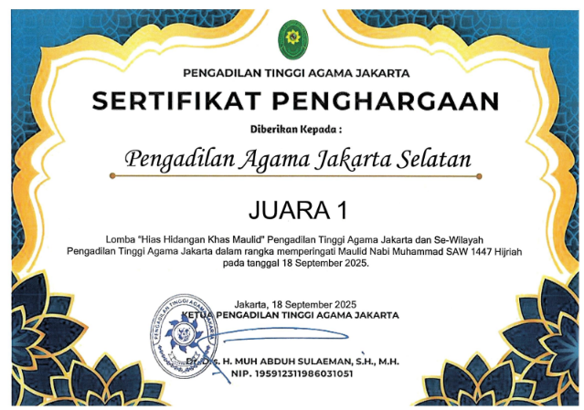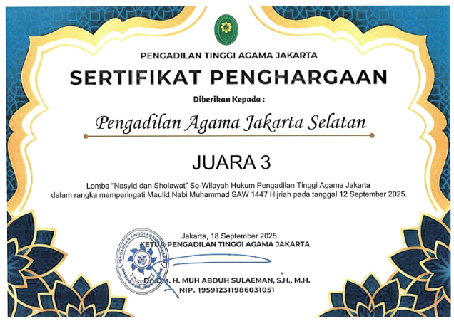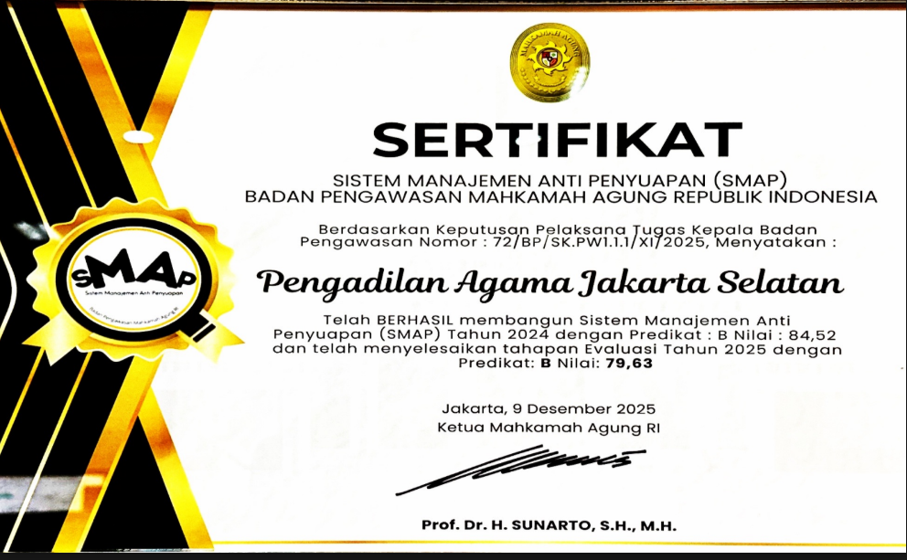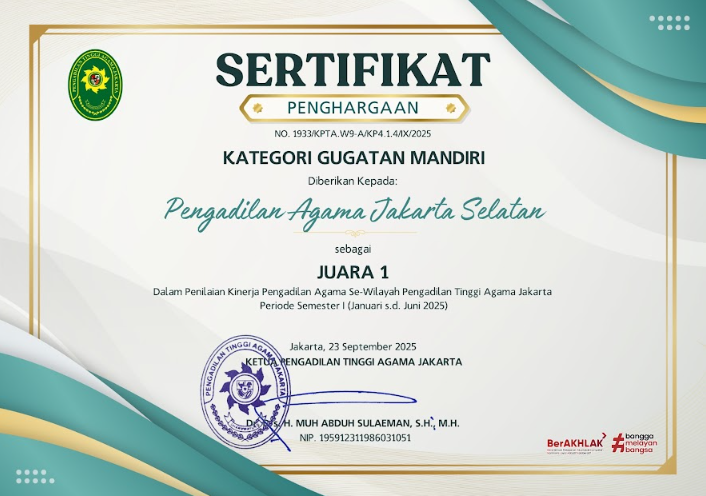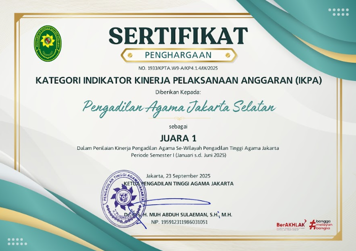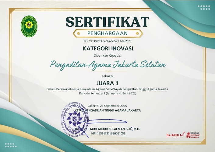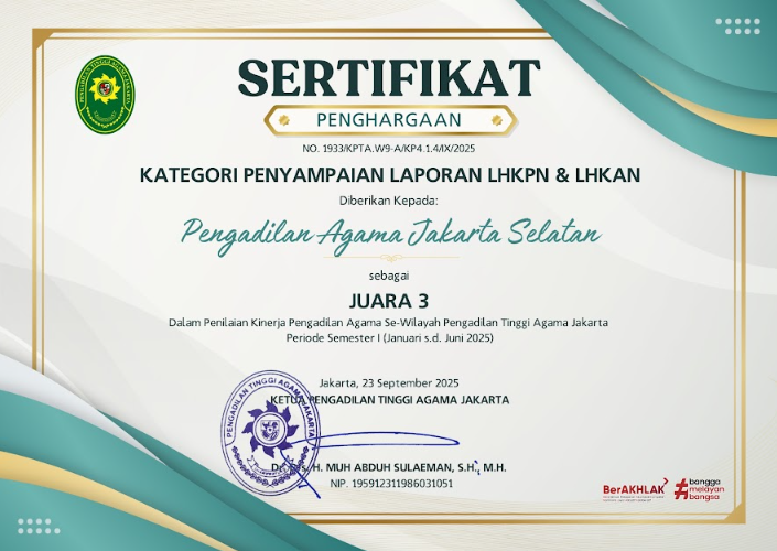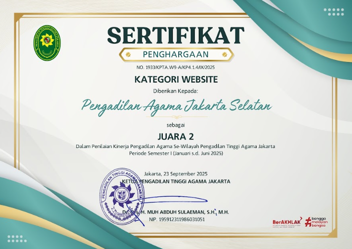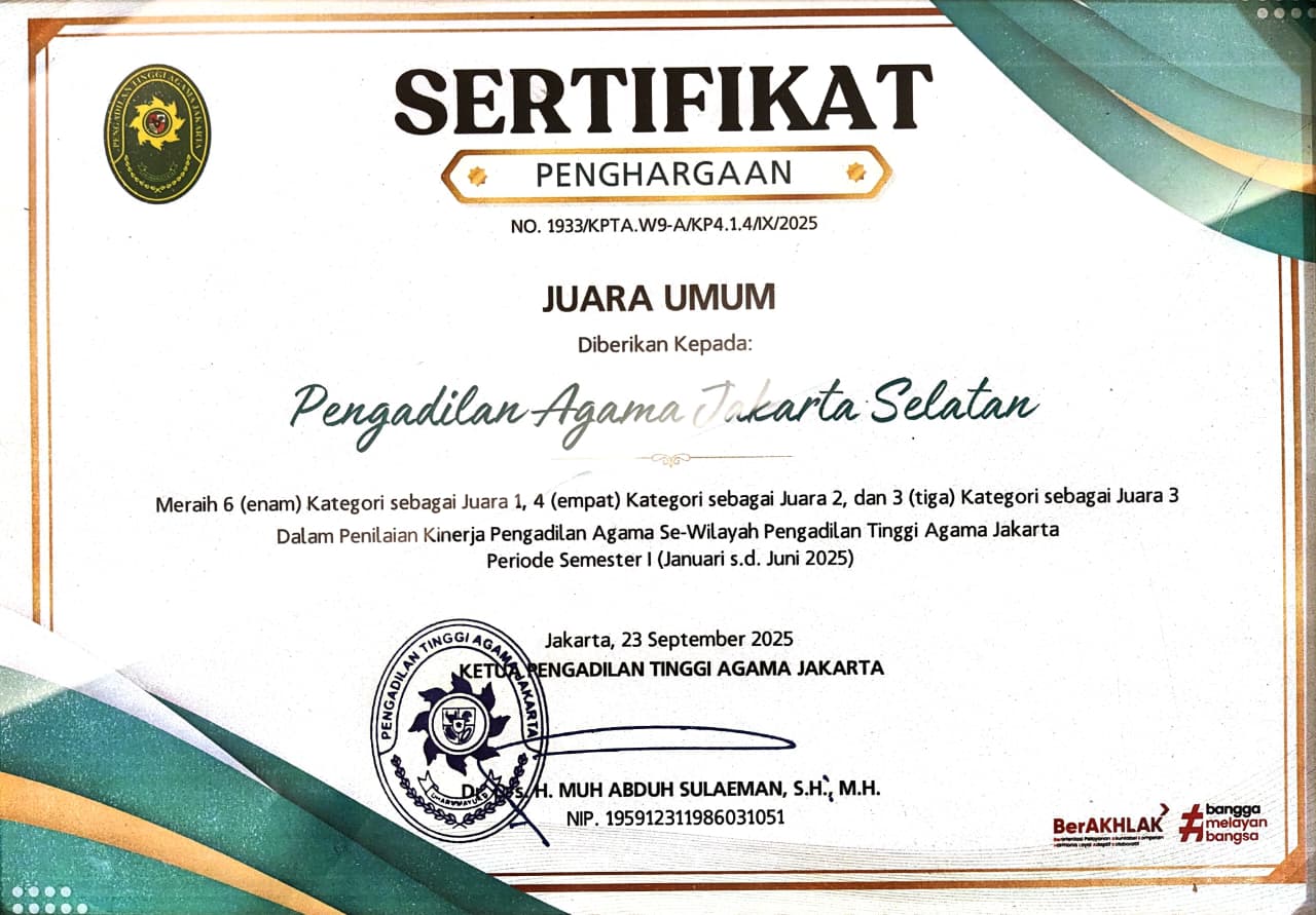 Pengadilan Agama Jakarta Selatan berkomitmen mewujudkan badan peradilan yang agung melalui layanan informasi publik yang transparan, akuntabel, dan mudah diakses. Saksikan video profil kami untuk melihat lebih dekat komitmen dan inovasi kami dalam melayani masyarakat.